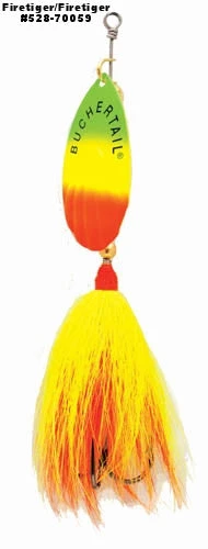 | Color | BUCHERTAIL Black/Red/Nickel, BUCHERTAIL Black/Nickel, BUCHERTAIL Black/Orange, BUCHERTAIL Natural/Nickel, BUCHERTAIL Perch/Brass, BUCHERTAIL Sunset, TINSEL Black/Nickel, TINSEL Black/Orange, TINSEL Chartreuse/Black/Nickel, TINSEL Firetiger, TINSEL Goldilocks, TINSEL Pearl/Chartreuse, TINSEL Texas Tea |