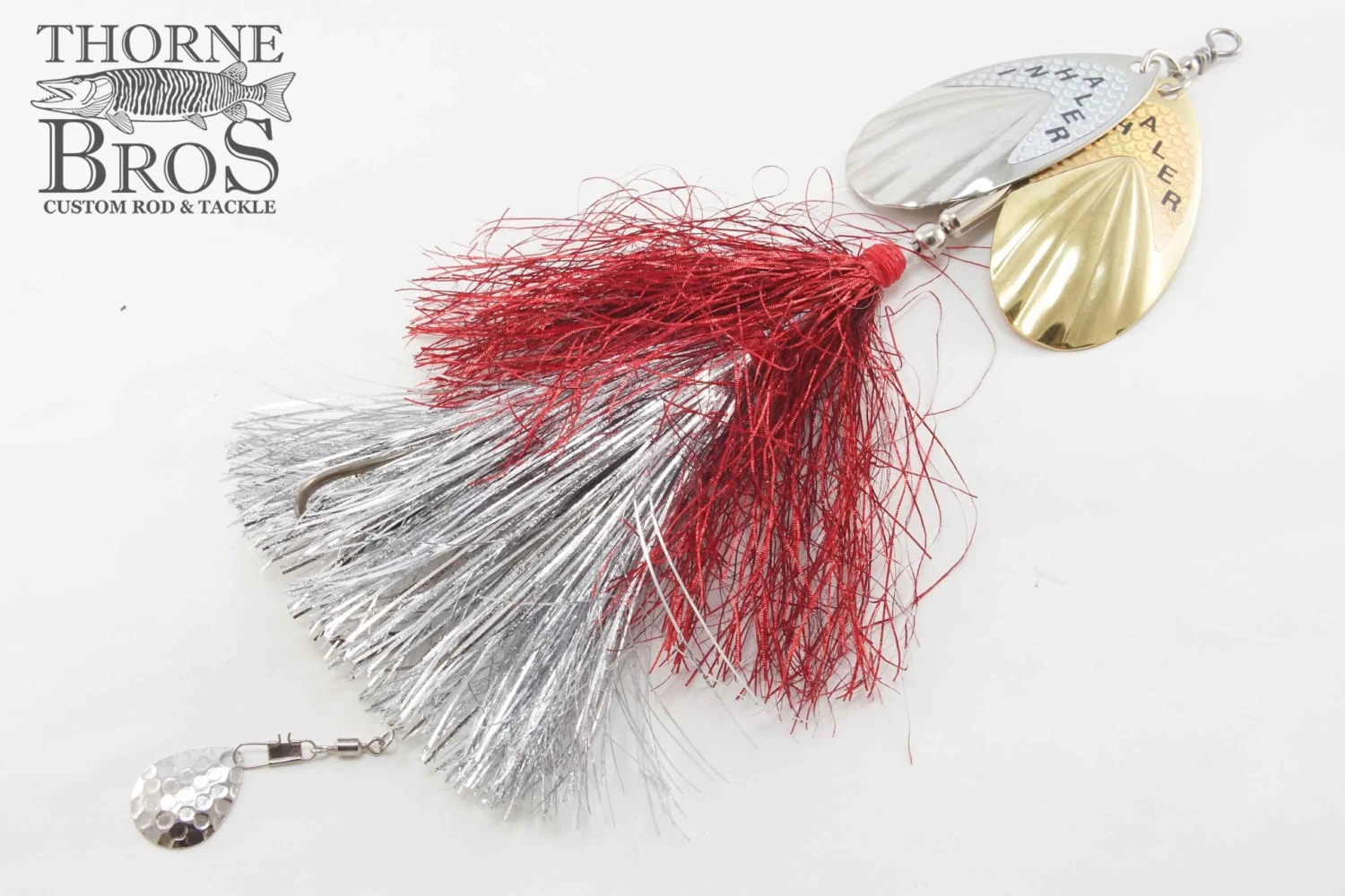 The Inhaler Twin Blade Firefly has extra vibration you need when targeting big fish. This 9″ lure combines a perfect tinsel tail with two #8 fluted indiana blades for the ideal thumping lure that will not wear you out. Comes with Inhaler’s famous chaser blade.Â