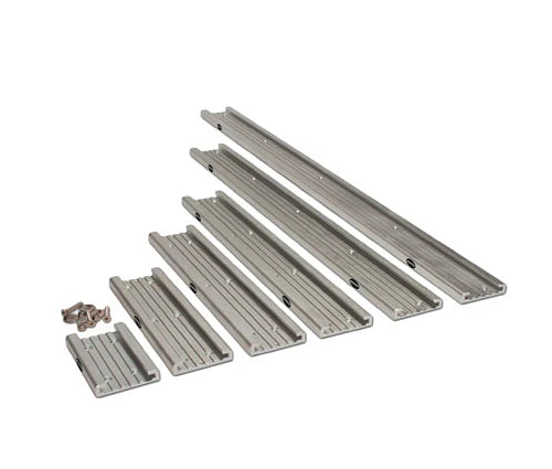 The foundation of the Traxstech system is an anodized aluminum mounting track with a grooved interior design.